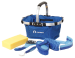 This 6 piece grooming kit is a great addition to your tack room or travel kit.It includes:-Soft Touch Flexible Body BrushSoft Touch Dandy BrushSoft Touch Mane & Tail BrushDeluxe Hoof Pick with Brush, Kite Frame Sweat Scraper, Large SpongeAll items are contained in lightweight, aluminium framed basket with soft grip handle.
